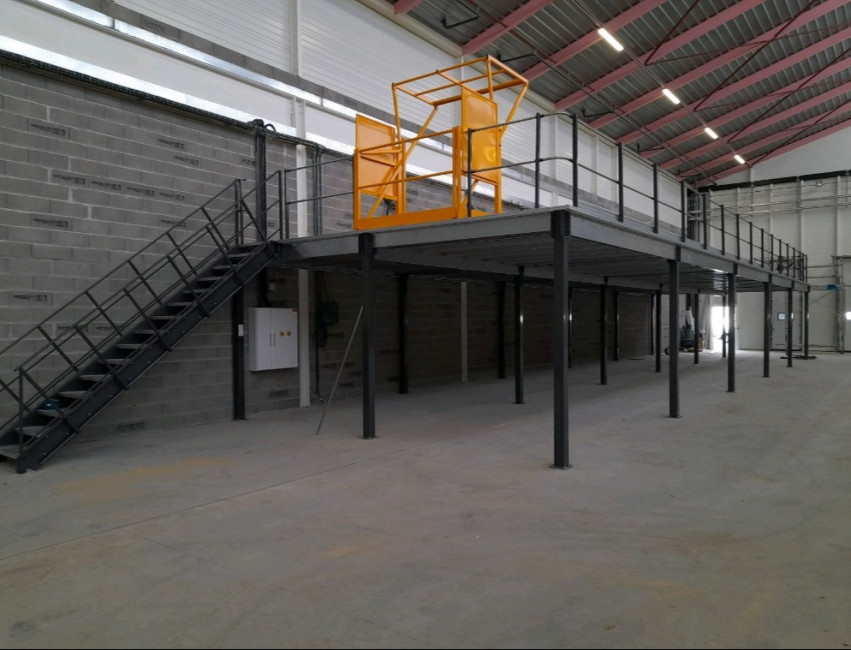 Sur la plateforme elle-même, vous avez la possibilité d'installer des rayonnages légers ou mi-lourds, des bureaux, de stocker des palettes, et même de mettre en place des cloisons amovibles pour créer des espaces de travail personnalisés.