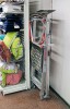 Cette échelle de mise en rayon se plie facilement ce qui permet un rangement même derrière les rayonnages.