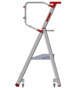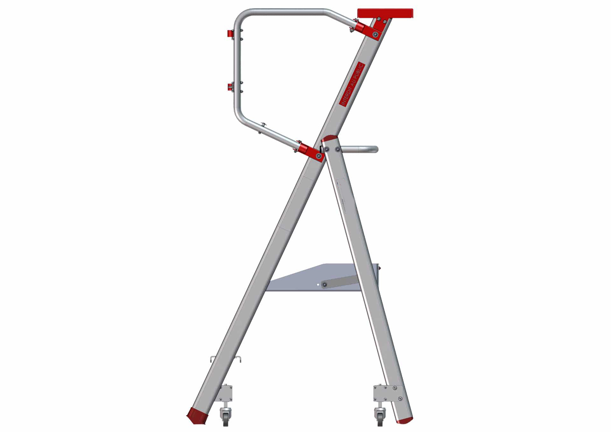 Doté de garde-corps rabattables avec verrouillage automatique et de sangles de sécurité, il garantit une utilisation sûre et adaptée aux besoins des professionnels.