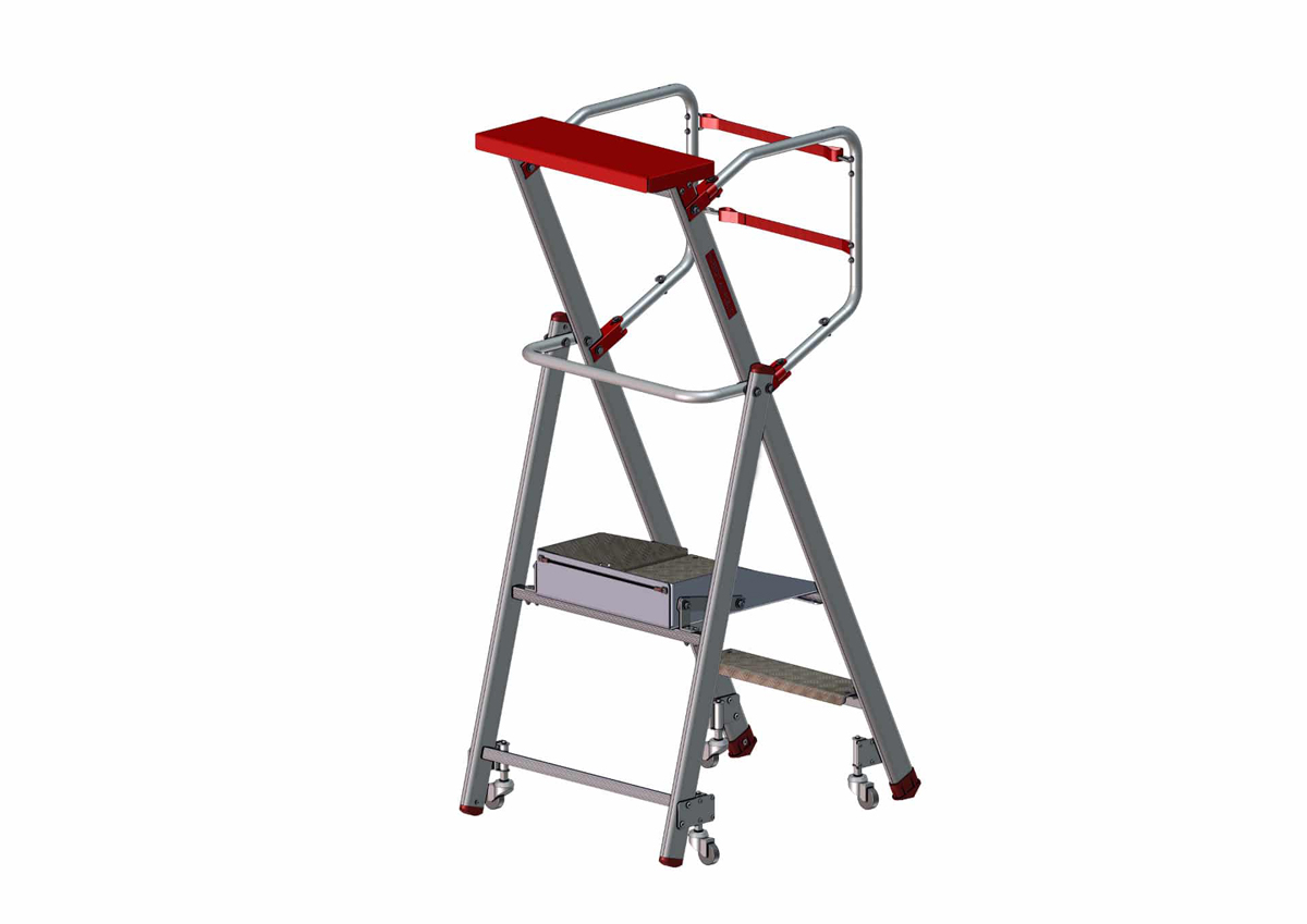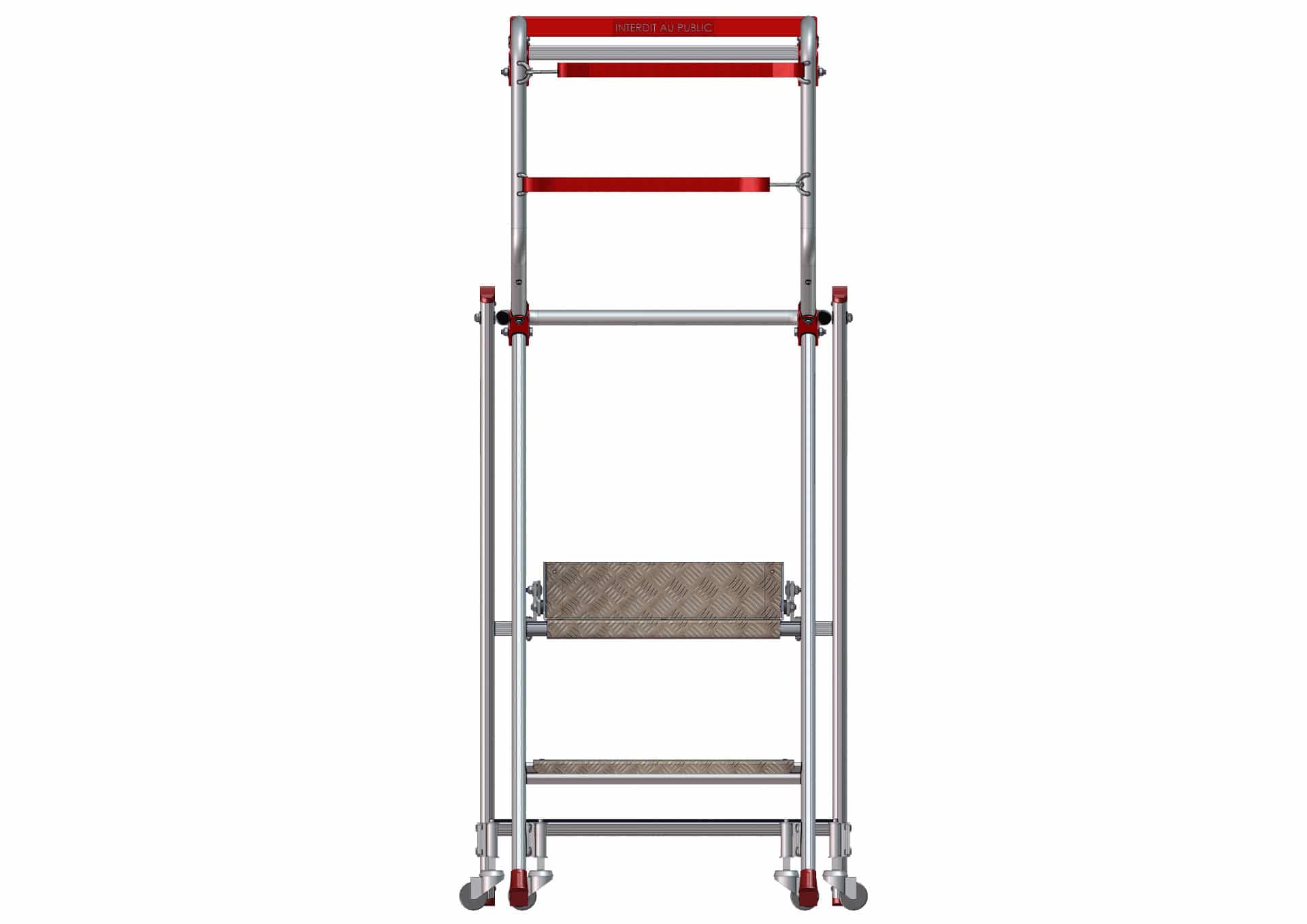 Il est doté d’une tablette porte outils, qui supporte un poids pouvant aller jusqu'à 15 Kg, sur laquelle le personnel peut poser des colis et travailler en toute sécurité.