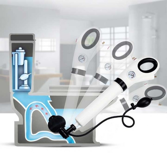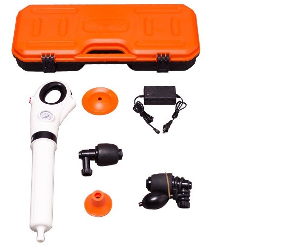 3. Le déboucheur est équipé plusieurs embouts pour s’adapter aux différentes canalisations, un chargeur de 230 V et une pompe électropneumatique.