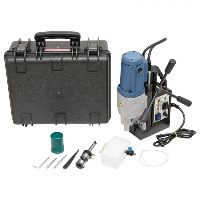 La machine est livrée en standard avec un cône CM 2 comme porte-outils, ce qui signifie qu'elle est compatible avec une variété d'accessoires tels que forêts hélicoïdaux, forêts d'alésage, alésoirs, mandrins d'alésage, scies rotatifs à lames amovibles, et bien plus encore.