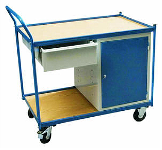 Servante mobile polyvalente équipée d'un tiroir, un bloc porte et une étagère.