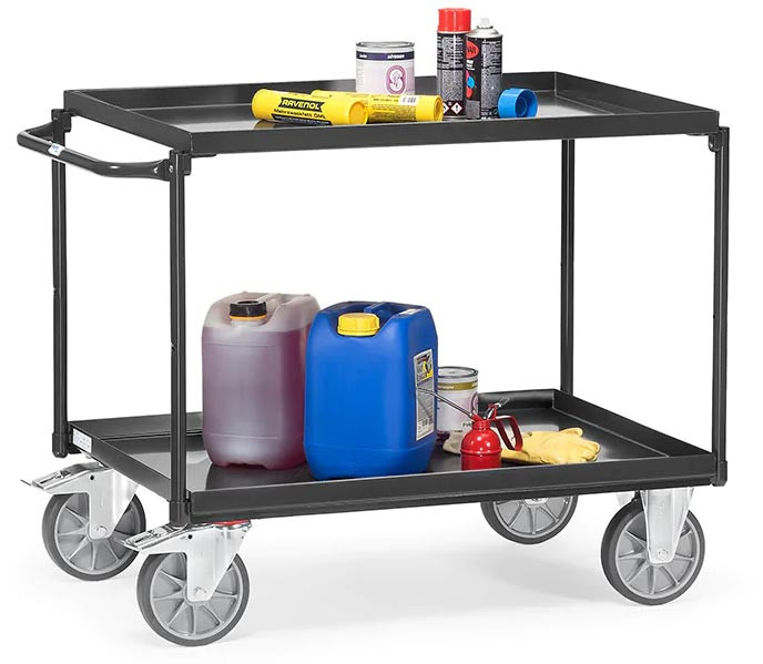 Servante d'atelier à 2 plateaux étanches en tôle d'acier