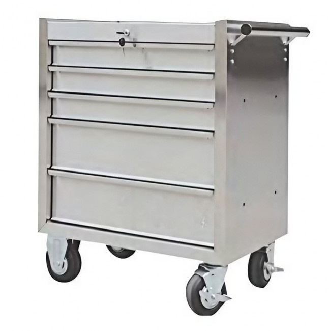 Le modèle 5 tiroirs affiche des dimensions de L.680 x P.460 x H.846 mm, pour une implantation compacte dans les ateliers ou laboratoires disposant d'un espace limité.