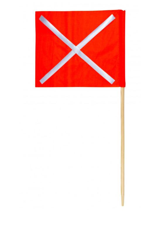 Un drapeau signalétique équipé d’une manche en bois d’un diamètre de 19 mm, et d’une hauteur de 1 mètre.