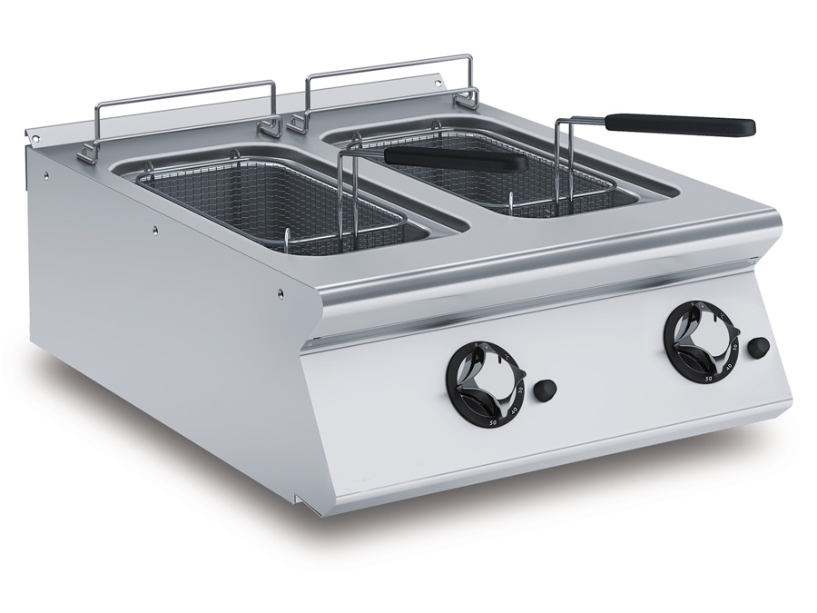 Friteuse électrique ou gaz en 2 bacs en 8 litres chacun pour un projet de restauration rapide pour fin Avril.Merci.