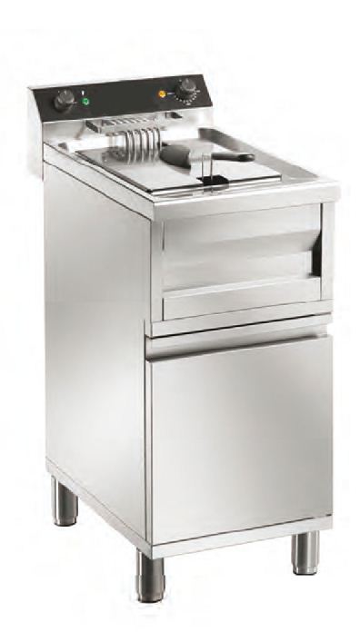 Sa cuve emboutie en inox avec zone froide garantit une huile plus propre, des fritures régulières et un nettoyage rapide.