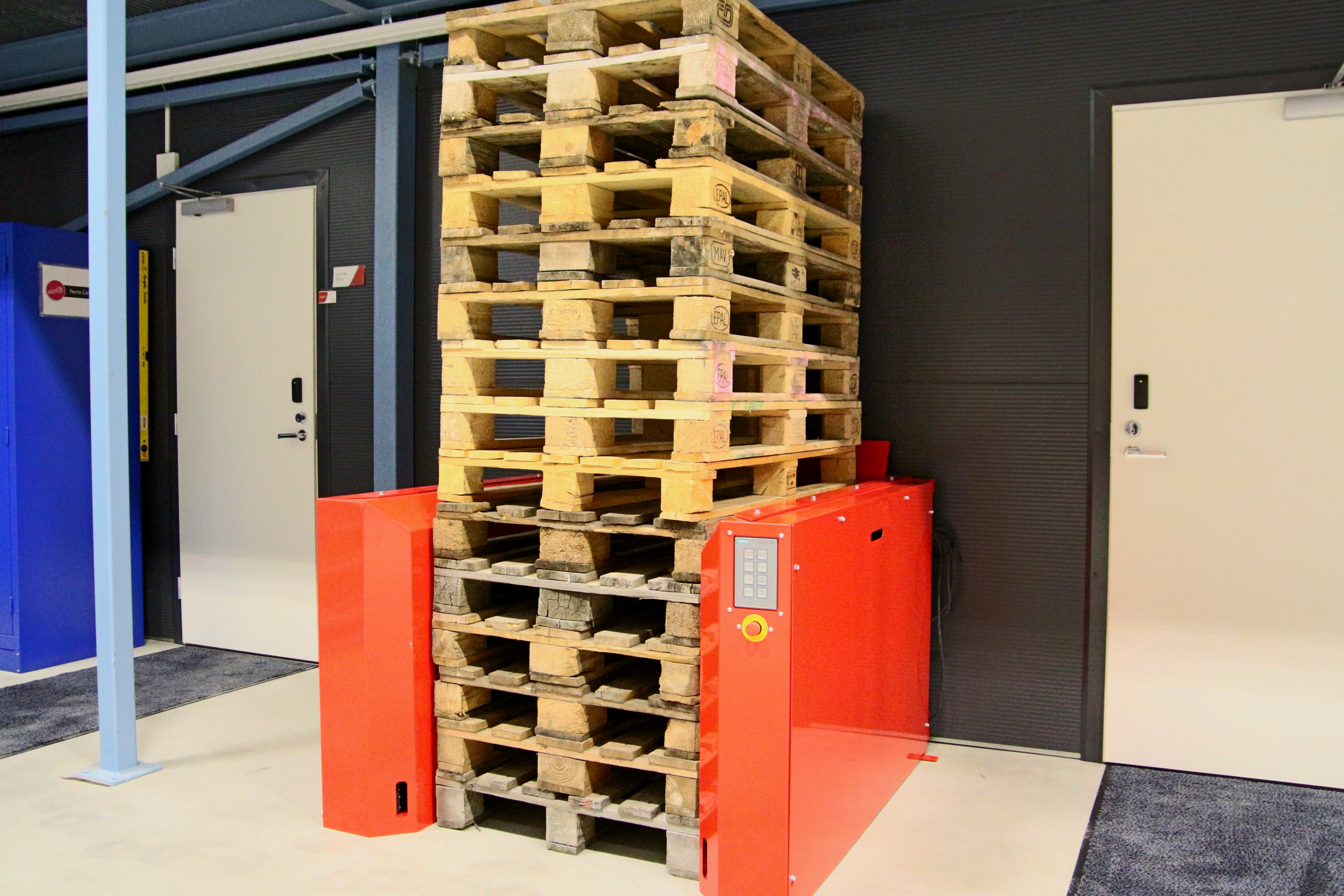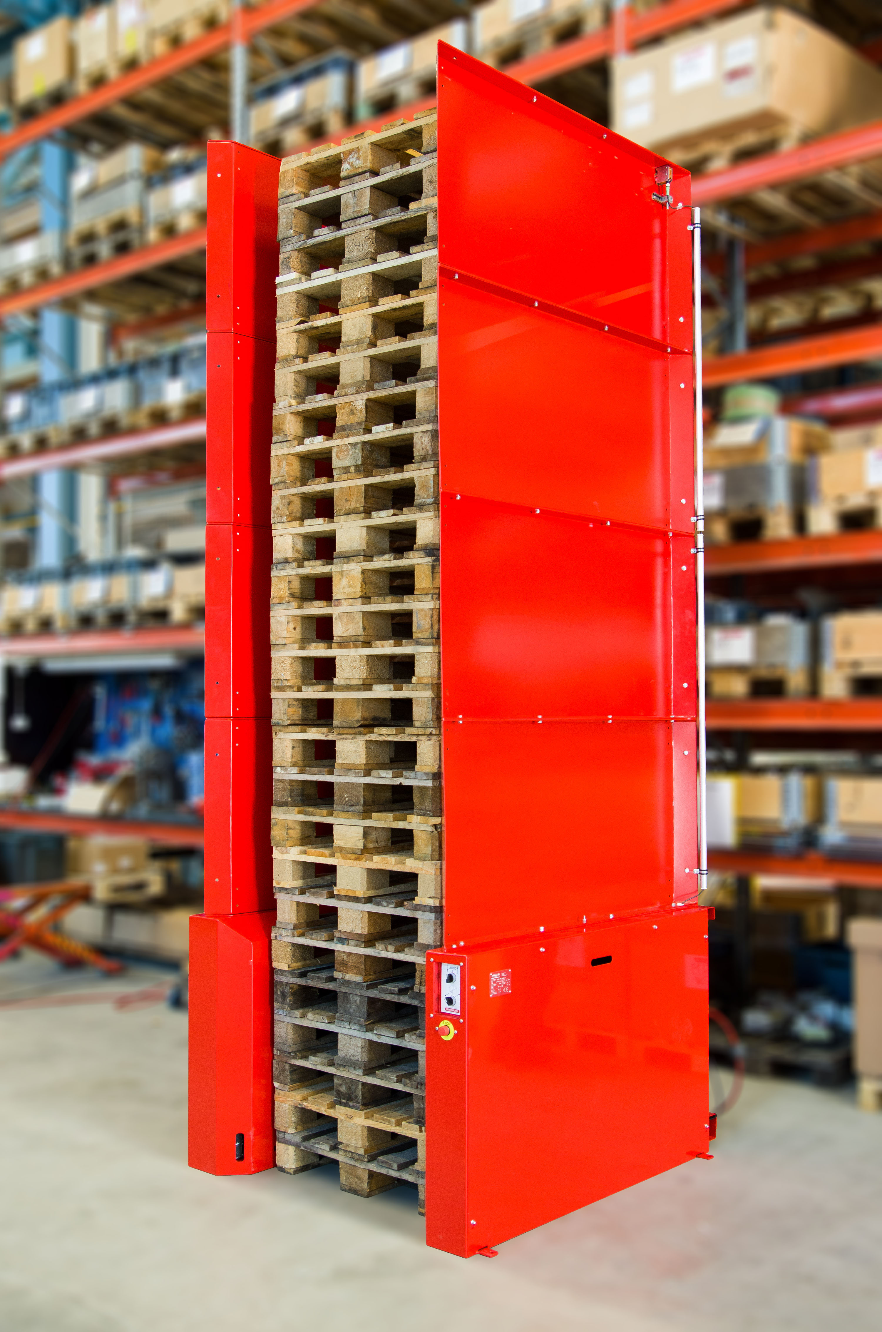 Je recherche un système mural ou fixe permettant de soulever temporairement une pile de palettes (jusqu"à 20/25 palettes vides) afin de pouvoir récupérer facilement la palette du bas à l’aide d’un gerbeur manuel ou électrique.