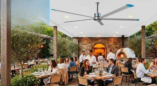 Ces performances permettent de brasser l’air sur une grande surface avec un seul ventilateur de plafond professionnel.