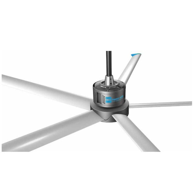 Avec son principe HVLS (High Volume Low Speed), il déplace un très grand volume d’air à faible vitesse pour créer un confort thermique homogène tout en restant silencieux.