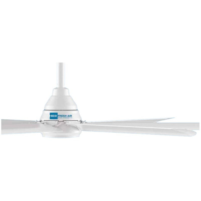 Ce grand ventilateur de plafond s'adapte ainsi aux petits commerces comme aux grandes salles d'exposition ou aux ateliers ouverts.