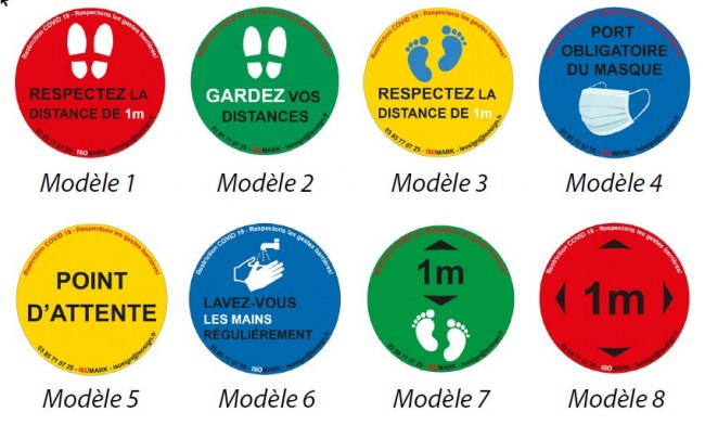 Ces autocollants sont à placer au sol, mais peuvent aussi être collés sur les murs ou les vitres.