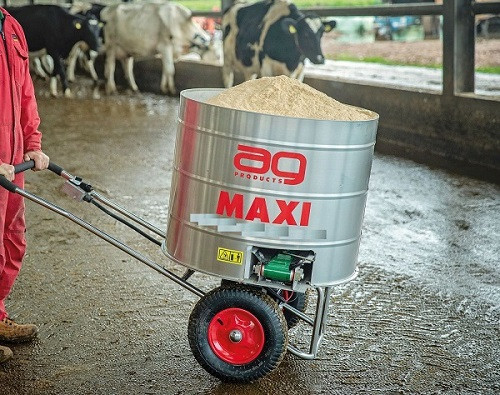 Le distributeur de sciure de bois AG Maxi de 215 litres est conçu pour les professionnels de l'élevage soucieux d'efficacité et de propreté.
