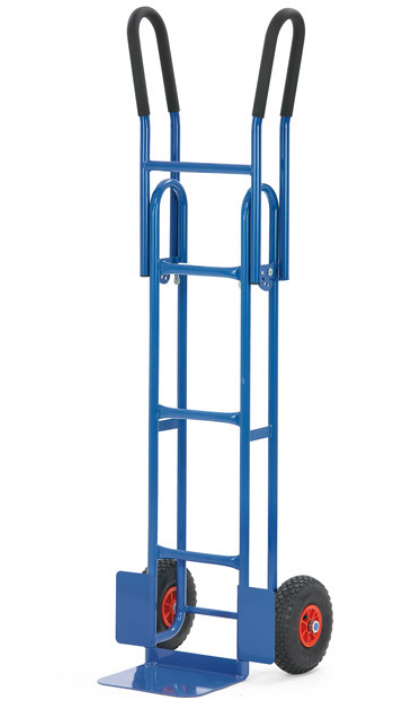Roues à bandage caoutchouc ou gonflables. Hauteur totale avec poignée mise en position verticale : 1760 mm.
