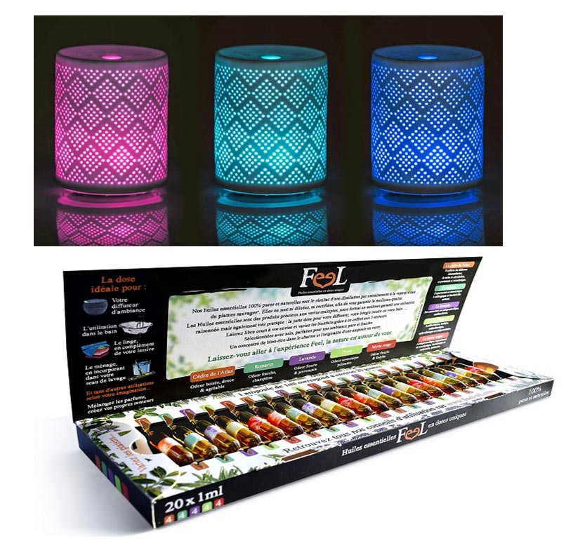 diffuseurs avec coffret d'huiles essentielles.