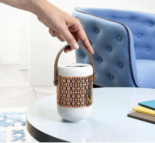 - Contemporain et élégant, il s'intègre dans tous types de lieux grâce à sa batterie qui le rend nomade.