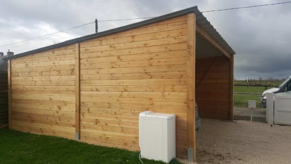 Ce garage en bois sans porte est la solution de protection qualitative pour votre voiture.