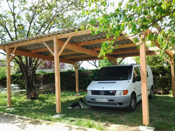 Pour nos voitures on cherche ce type d"abri ouvert en bois avec la possibilité de le fermé à l"arriere sur 30m/8m50. hauteur la plus haute dispo. Cordialement.