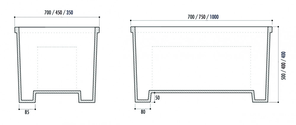 | Réf. TC :222622809 | Jardinière en fonte | 1000 x 350 | 400 | 145 | -