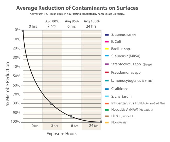 Le seul purificateur d’air sur le marché qui utilise une combinaison exclusive de technologies, notamment la production d’ions, un filtre étanche plus performant que les filtres HEPA, l’oxydation photocatalytique et notre technologie exclusive ActivePure® dont l’efficacité est testée et éprouvée contre les bactéries, les virus (Covid 19,Hepatitis A -HAV, H1N1 Norovirus, Influenza virus H5N8, Coronavirus), les moisissures et les champignons présents dans l’air et sur des surfaces.