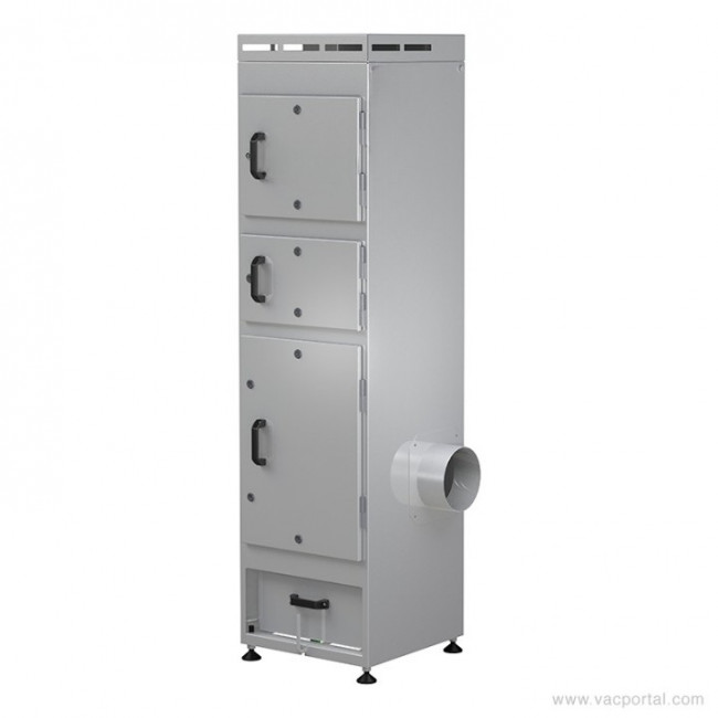 Le filtre à cartouche, monté sur une glissière, peut être retiré du caisson sans risque de contamination.