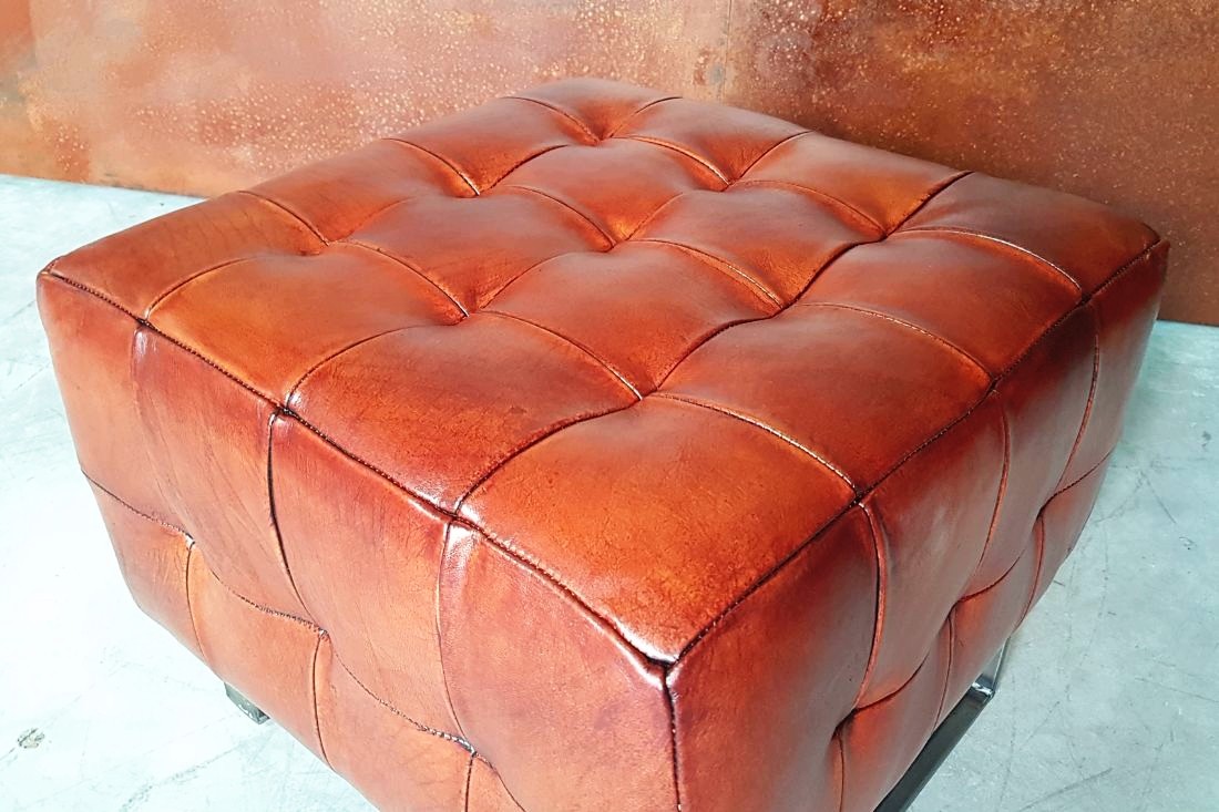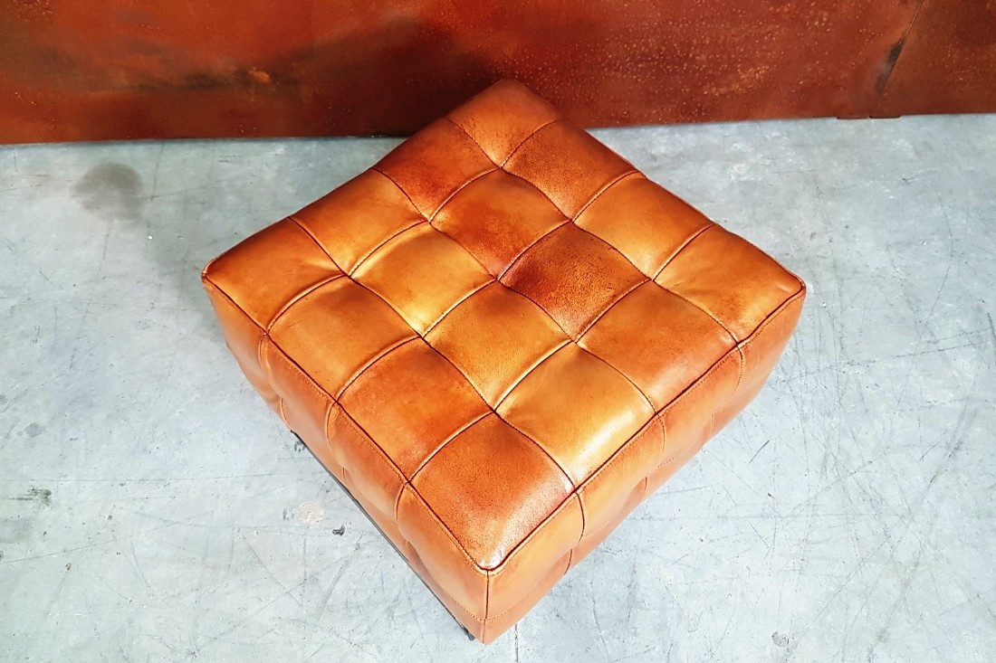 - Pouf carré en cuir : parfait pour un salon moderne ou minimaliste