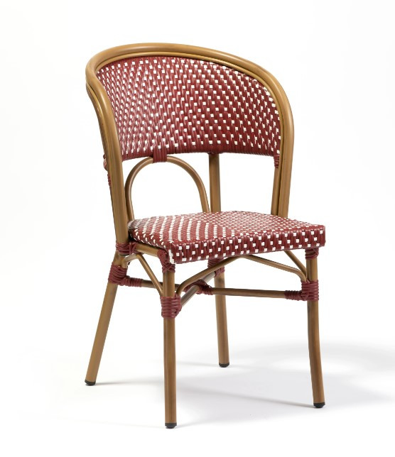 - Chaise de terrasse bordeaux et blanche, lie de vin