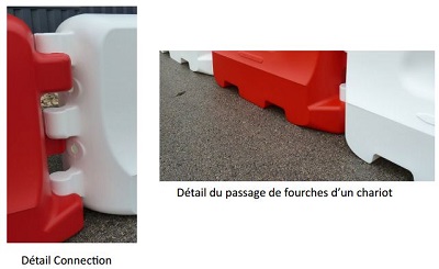 Nous avons besoin de deux barrières, uniquement du modèle suivant : Séparateur modulaire de voie - En PEHD - L.1120 mm x l.300 mm x H.750 mm, Code fiche produit : 15183451.