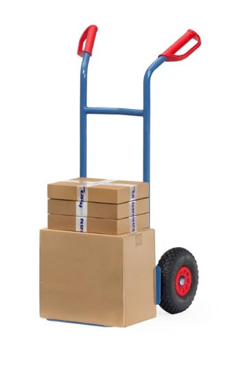 Ce diable en tube d'acier est un outil de manutention très utilisé par les professionnels pour le transport de marchandises.