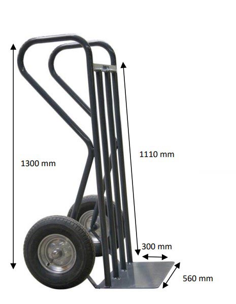 Le tablier haut de 1110 mm transforme ce diable en outil polyvalent capable de manipuler des charges particulièrement encombrantes.