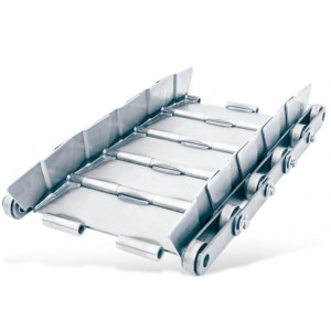Ce tapis métallique est utilisé pour déplacer des produits en vrac, des petites pièces, de la visserie, des copeaux, et des matériaux fragmentés comme l'acier et l'aluminium.