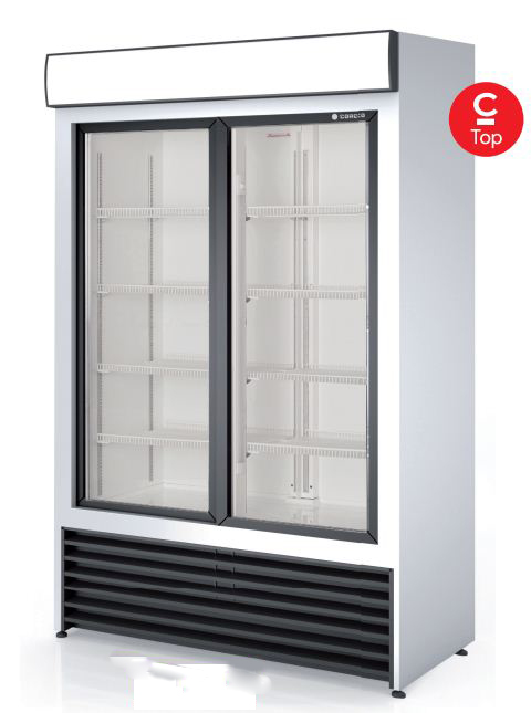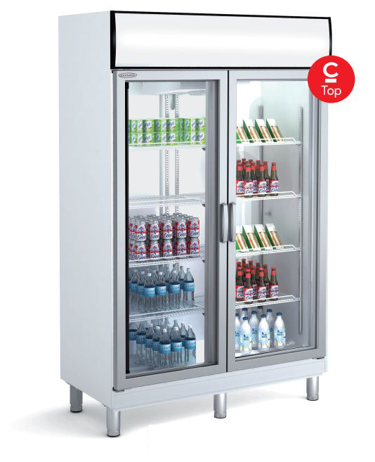 L’armoire est équipée d’une porte double vitrage sur bâti aluminium et poignée emboutie et d’un bandeau lumineux supérieur.