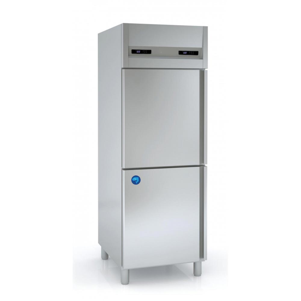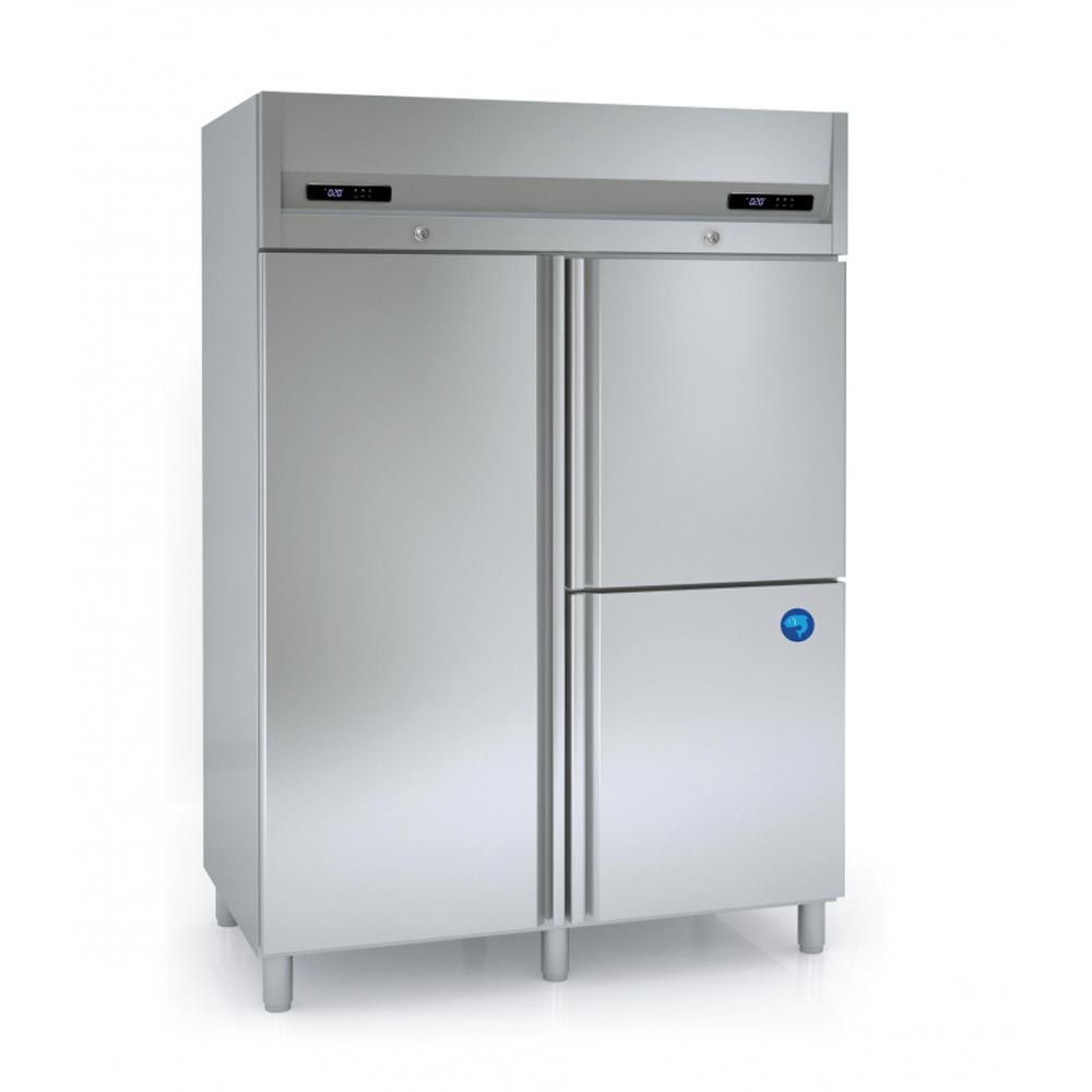 Il est muni d’un évaporateur statique pour le compartiment poisson et un évaporateur ventilé pour le reste du meuble.