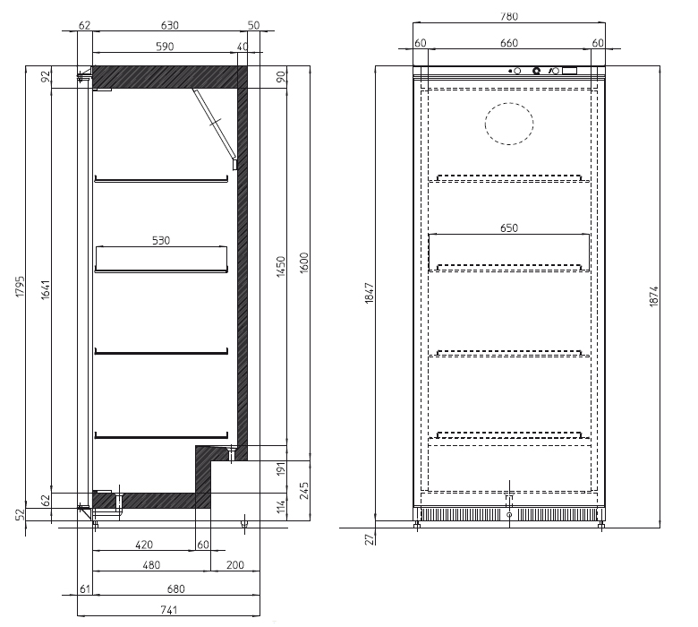 - Dimensions : L.780 x P.742 x H.1874 mm