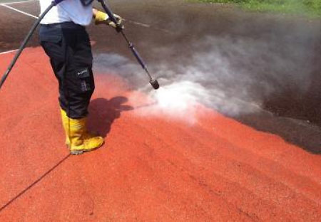 Nettoyage, colmatage des fissures, traitement anti mousse, peintures et lignes