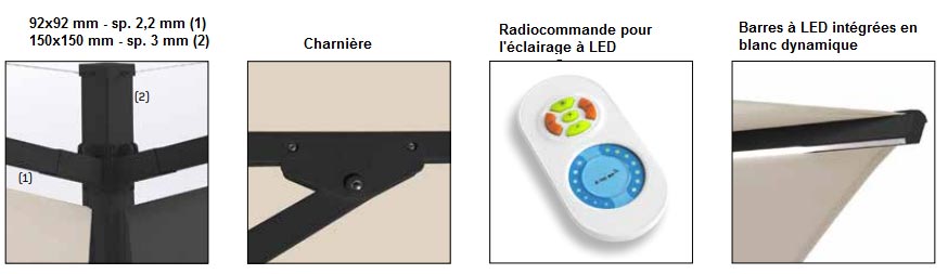 Les bras horizontaux sont réalisés en aluminium laqué, offrant légèreté, solidité et une excellente résistance aux intempéries.