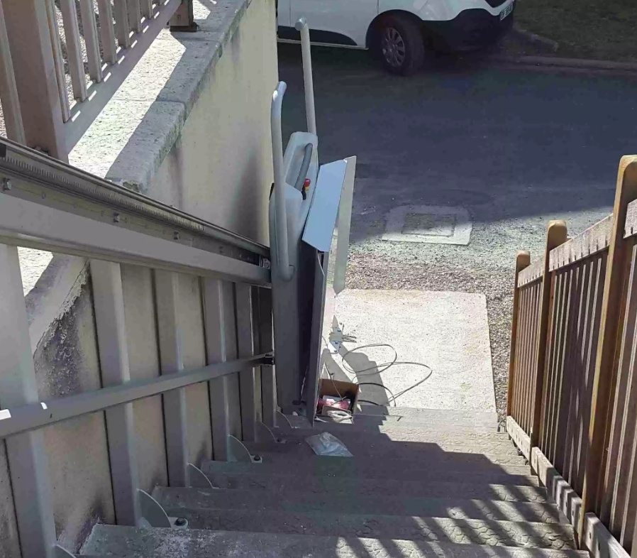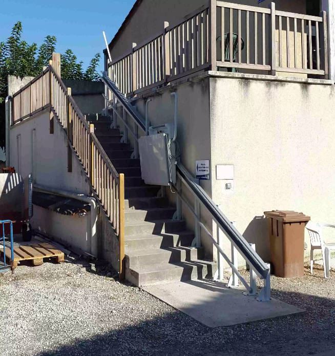 La plate-forme élévatrice est conçue pour les personnes à mobilité réduite, son installation se fait le long d’un rail fixé sur l’escalier.