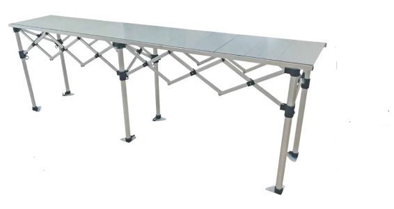 Trois comptoirs pliables en aluminium : service fluide sur tout le pourtour