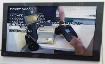 - Dès qu'une personne intervient sur la caisse pour faire un ticket, tous les produits facturés sont indiqués en surimpression sur la vidéo (quantités, produits, total ticket)