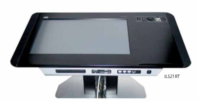 ILS21R • Haute résolution avec écran tactile de 20" • Poignées en cuir confortables • Système est sur une table raffinée • Réglage en hauteur Réf. ILS21RT/RL : 20" tactile, microphone XLR, DVD, PC MicroATX Core2Duo, 2 Go, 80 Go, MS XP Pro SP2, Sho-Q