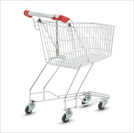 Ce chariot libre-service en métal pour enfant est robuste, peu encombrant et se dirige facilement.