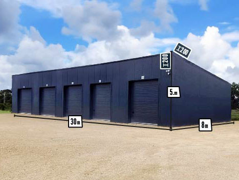 - Une surface totale de 240m² offrant 5 cellules locatives pour stockage de 48m²