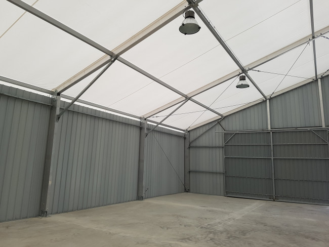 28/03/2024Bâtiment galvanisé fermé en tôles 5 ondes renforcées avec porte coulissante - 16,6x24x5m. Cordialement.