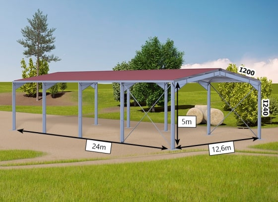 Bâtiment en kit 300m² - chéneaux et régulateurs inclus - 12,6x24x6m