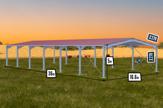ROBUSTESSE ET RÉSISTANCE Structure en profil Ɪ grâce au PRS en Acier Haute Résistance, utilisés dans la construction de bâtiments de dimensions et hauteurs importantes Toiture et bardage en tôle de 1er choix 5 ondes renforcées, un modèle unique de tôle pour une résistance 8% plus importante que la tôle classique, consulter notre nuancier Support optimal de la toiture grâce aux pannes C180mm 9% plus résistantes que les pannes C160mm habituellement proposées sur le marché