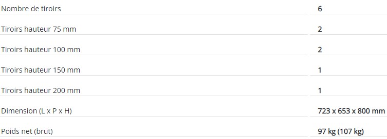 - Chaque tiroir peut accepter jusqu’à 100 kg de charge répartie