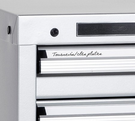 - Chaque tiroir est équipé d’une réglette porte-étiquette sur toute la largeur