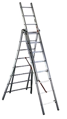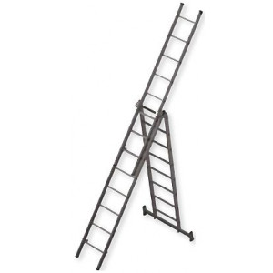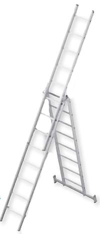 Echelle transformable 3 plans aluminium - De 6 à 14 échelons - Aluminium