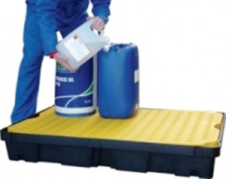 Bac de rétention en PEHD adapté pour le stockage de petitsbidons ou autres contenants de produitschimiques et corrosifs.